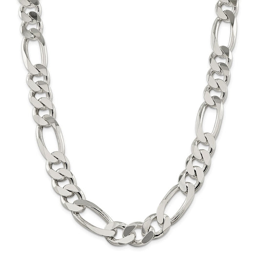 Men's 925 Sterling Silver 13.5mm Figaro Chain Necklace, 26"