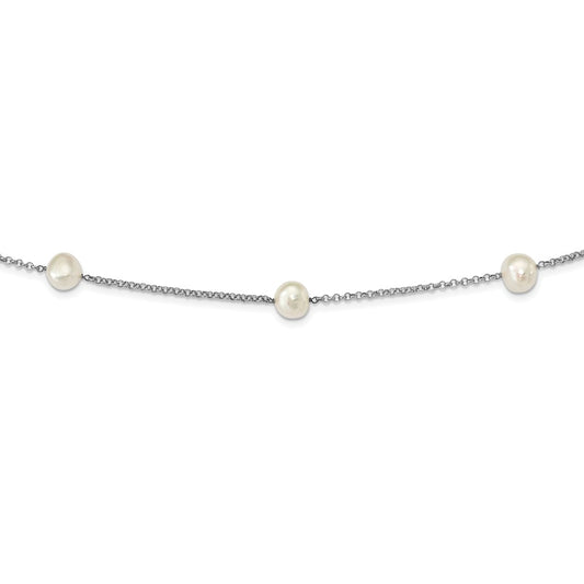 925 Sterling Silver White Freshwater Cultured Pearl Necklace (5-6mm), 20"