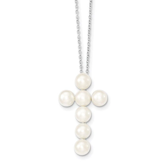 925 Sterling Silver White Freshwater Cultured Pearl Cross Necklace (6-7mm), 17"