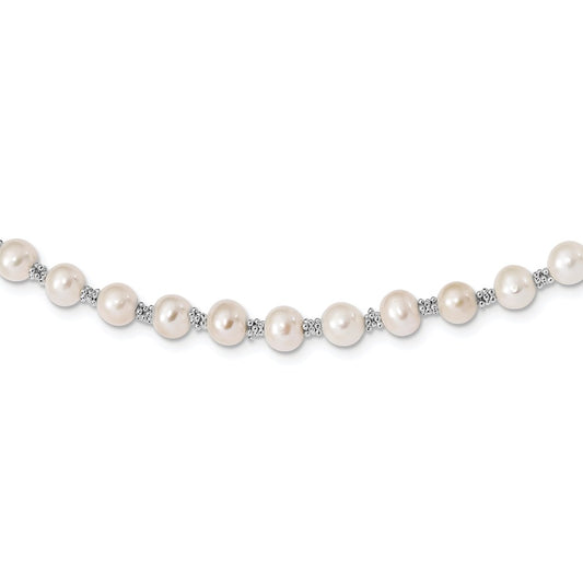 925 Sterling Silver White Freshwater Cultured Pearl Necklace (5-6mm), 16"