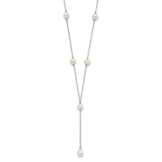 925 Sterling Silver White Freshwater Cultured Pearl 9 Station 2 Drop Necklace, 16" +2" Extender