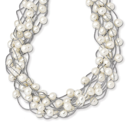 925 Sterling Silver White Freshwater Cultured Pearl Multi-strand Necklace (6-8mm), 15"