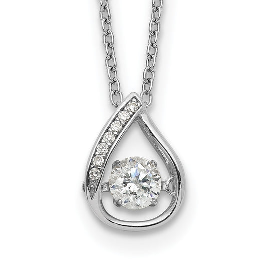 925 Sterling Silver Vibrant Cubic Zirconia Center Teardrop Necklace, 18"