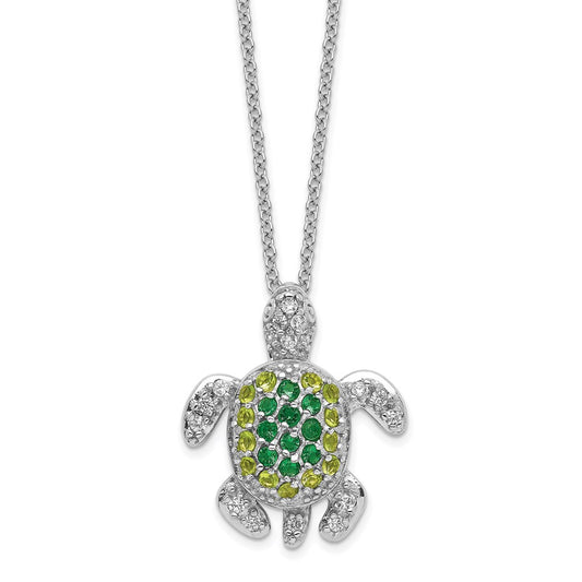 925 Sterling Silver Simulated Peridot/Simulated Emerald/CZ Turtle Necklace, 18"