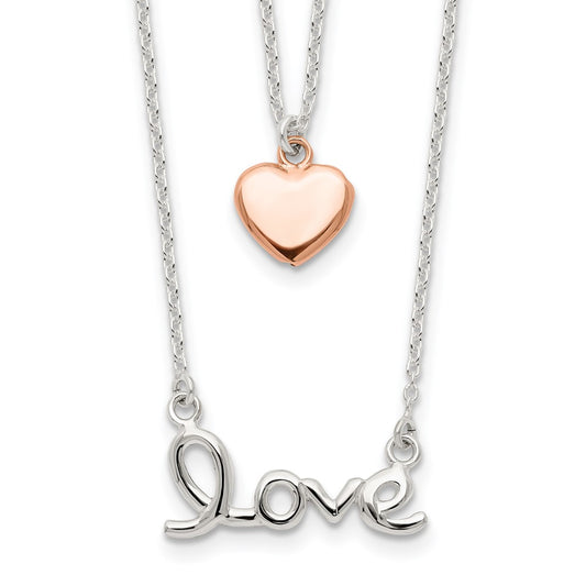 925 Sterling Silver Rose-Tone Love and Heart Necklace, 18"