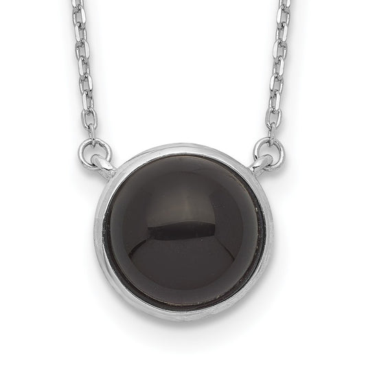 925 Sterling Silver Round Shape Onyx Cabochon Necklace, 17.5"