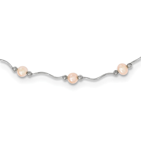 925 Sterling Silver Pink Freshwater Cultured Pearl Necklace (6-7mm), 18"