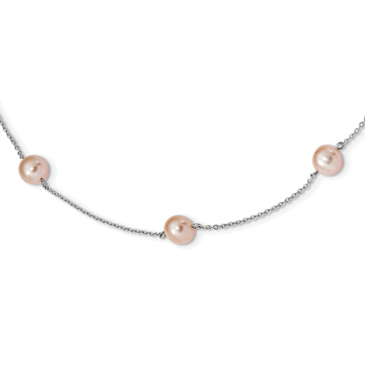 925 Sterling Silver Pink Freshwater Cultured Pearl Necklace (7-8mm), 18"