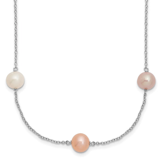 925 Sterling Silver Multi-Color Freshwater Cultured Pearl Necklace (8-9mm), 18"