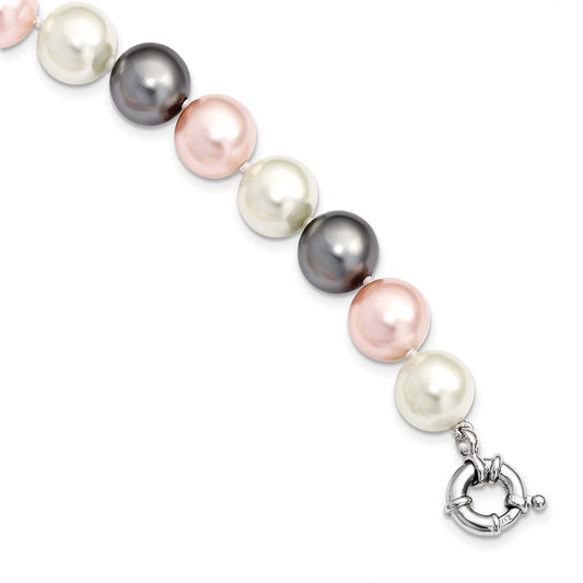 925 Sterling Silver Multi-Color Imitation Shell Pearl Necklace (12-13mm), 18"