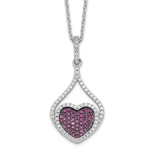 925 Sterling Silver Red and White Cubic Zirconia Brilliant Embers Heart Necklace, 18"