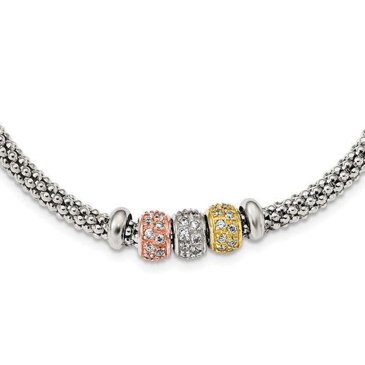 925 Sterling Silver Rose and Yellow Gold Tone Cubic Zirconia Beads Mesh Necklace, 17"