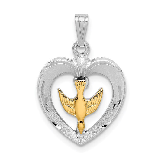 925 Sterling Silver Gold Tone Diamond Cut Dove Heart Pendant