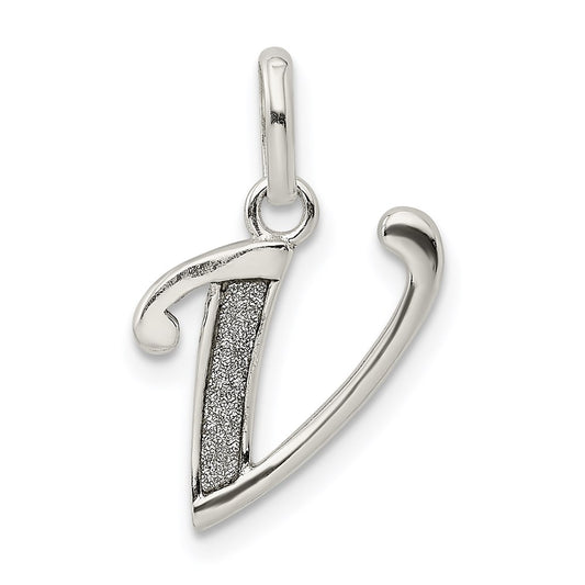 925 Sterling Silver Glitter Enamel Letter V Pendant