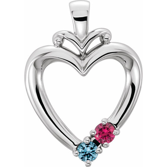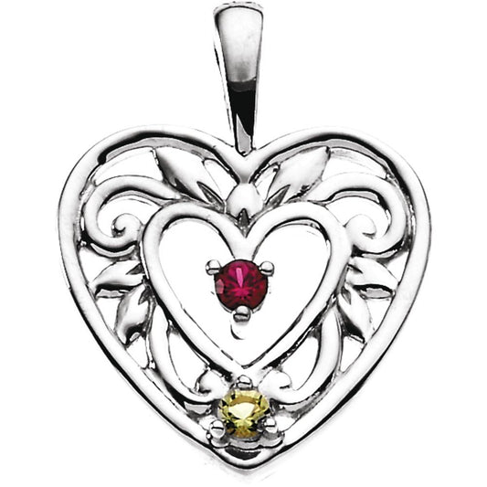 Semi-Polished Continuum Sterling Silver 2 Two-Stone Family Heart Shape Pendant (Mounting Only, Not All Stones Included)