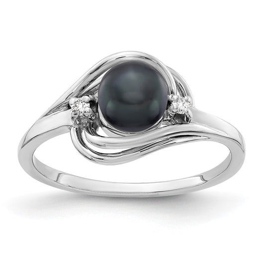14k White Gold Black Freshwater Cultured Pearl Diamond Ring (6mm), Size 6