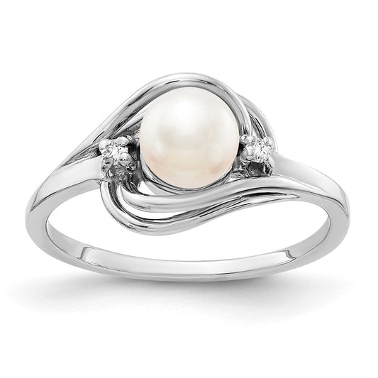 14k White Gold Freshwater Cultured Pearl and Diamond Ring (5mm), Size 6