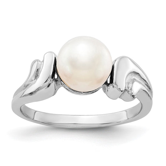 14k White Gold Freshwater Cultured Pearl Ring (7mm), Size 6