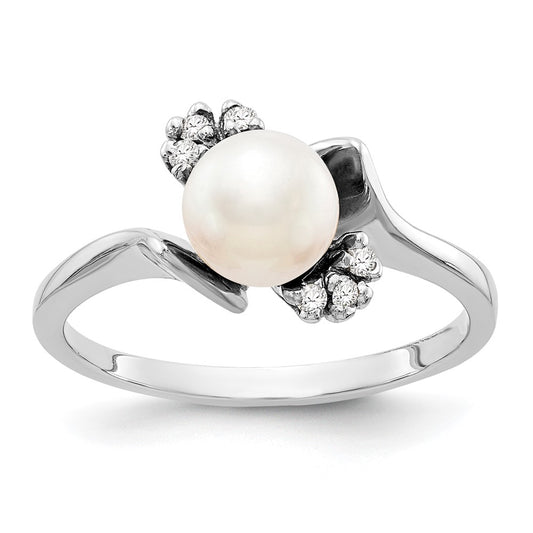 14k White Gold Freshwater Cultured Pearl Diamond Ring (6mm), Size 6