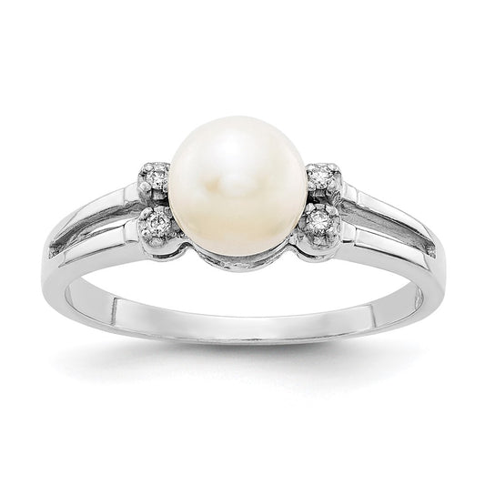14k White Gold Freshwater Cultured Pearl Diamond Ring (6mm), Size 6