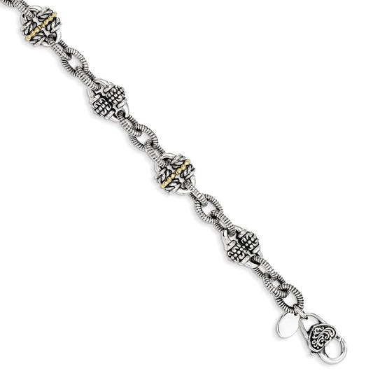 925 Sterling Silver and 14k Yellow Gold Bracelet, 7.5"