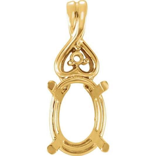 14k Yellow Gold 10x8mm Oval Shape Diamond Semi-Mount Pendant (Mounting Only, Not All Stones Included, .025 cttw)