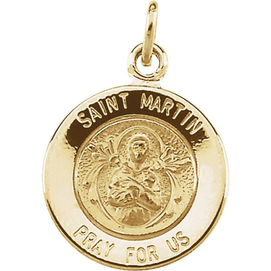 14k Yellow Gold 12mm Round Shape Saint Martin de Porres Medal Religious Pendant