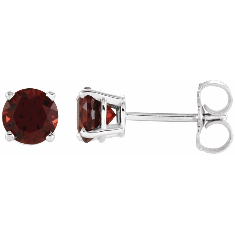 14k White Gold 5mm Round Shape Mozambique Garnet Stud Earrings