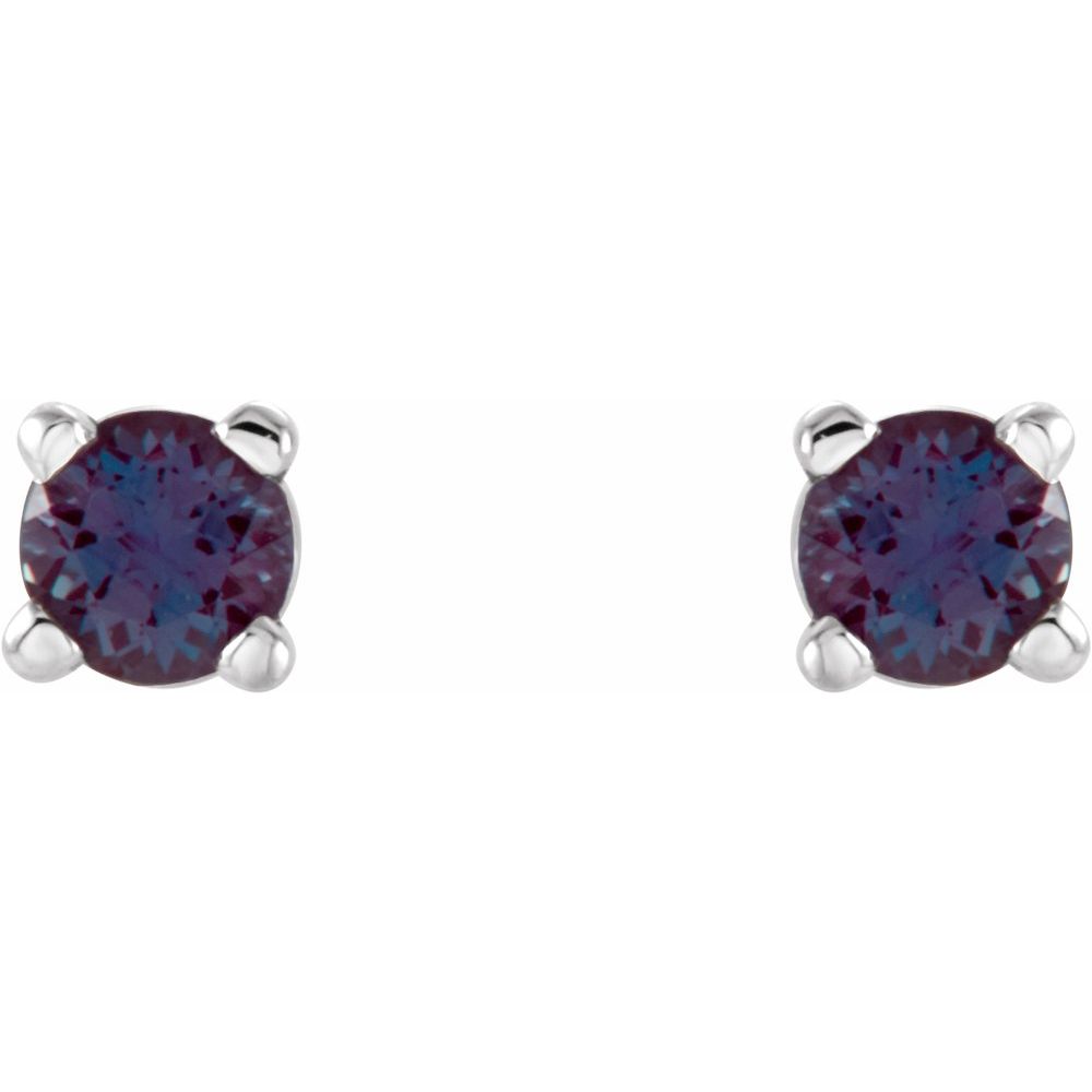 14k White Gold 2.5mm Round Shape Lab-Grown Alexandrite Stud Earrings
