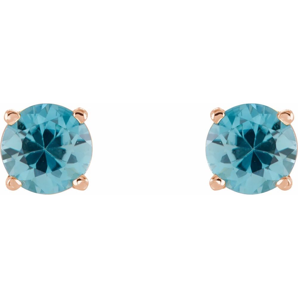14k Rose Gold 5mm Round Shape Blue Zircon Stud Earrings
