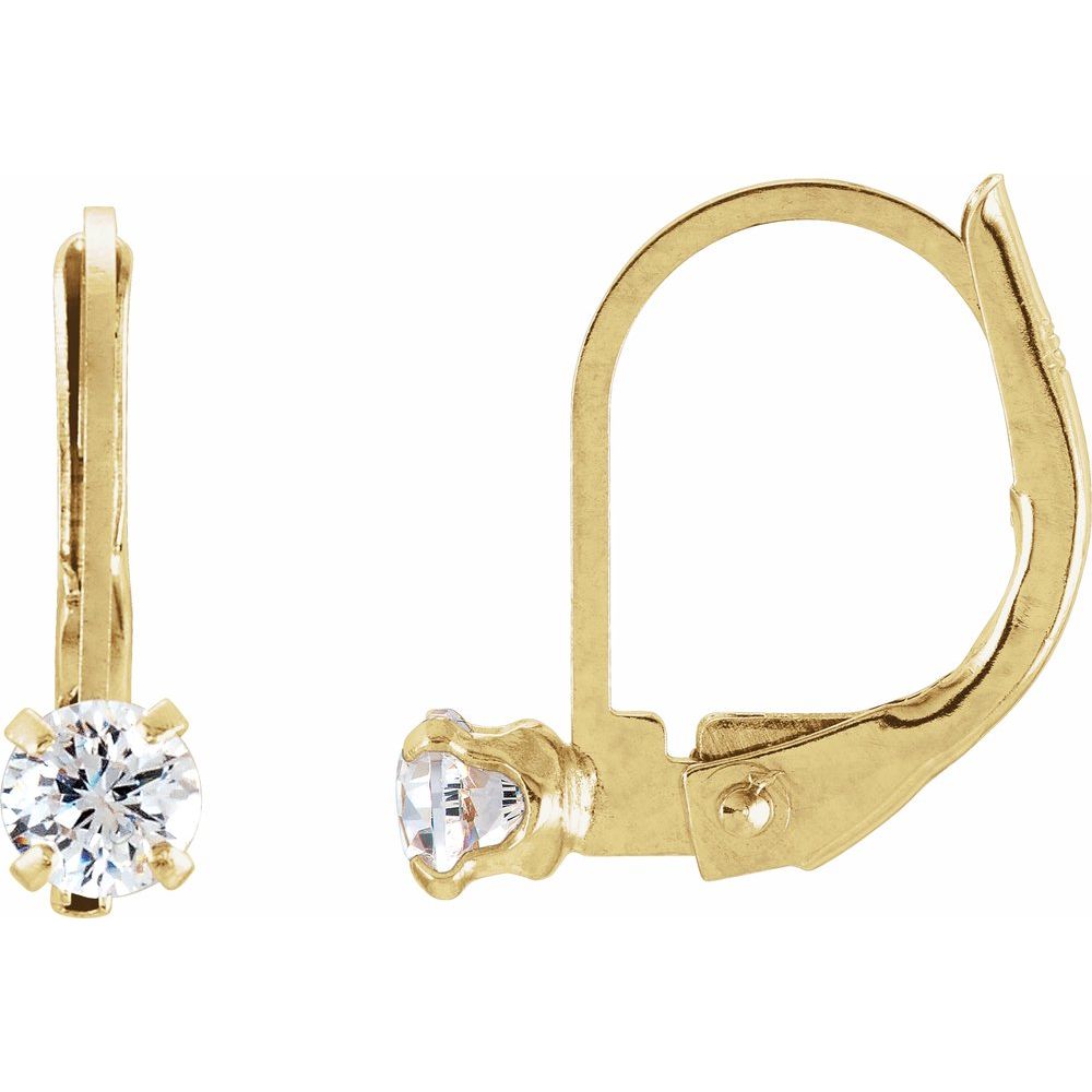 14k Yellow Gold 2mm Round Shape Cubic Zirconia Small Leverback Earrings