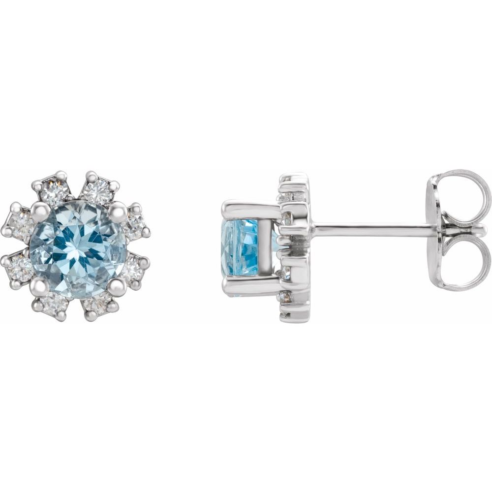 Description: Genuine Aquamarine And .07 cttw Diamond Earrings