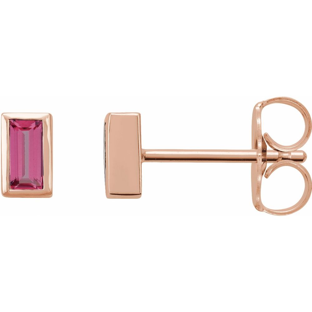 14k Rose Gold Pink Tourmaline Bezel-Set Stud Earrings