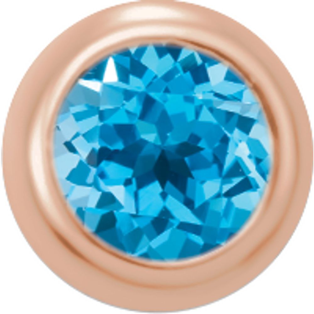 14k Rose Gold 2mm Round Shape Swiss Blue Topaz Micro Bezel-Set Single Earring (Only One Earring Piece Sold, Not the Pair)