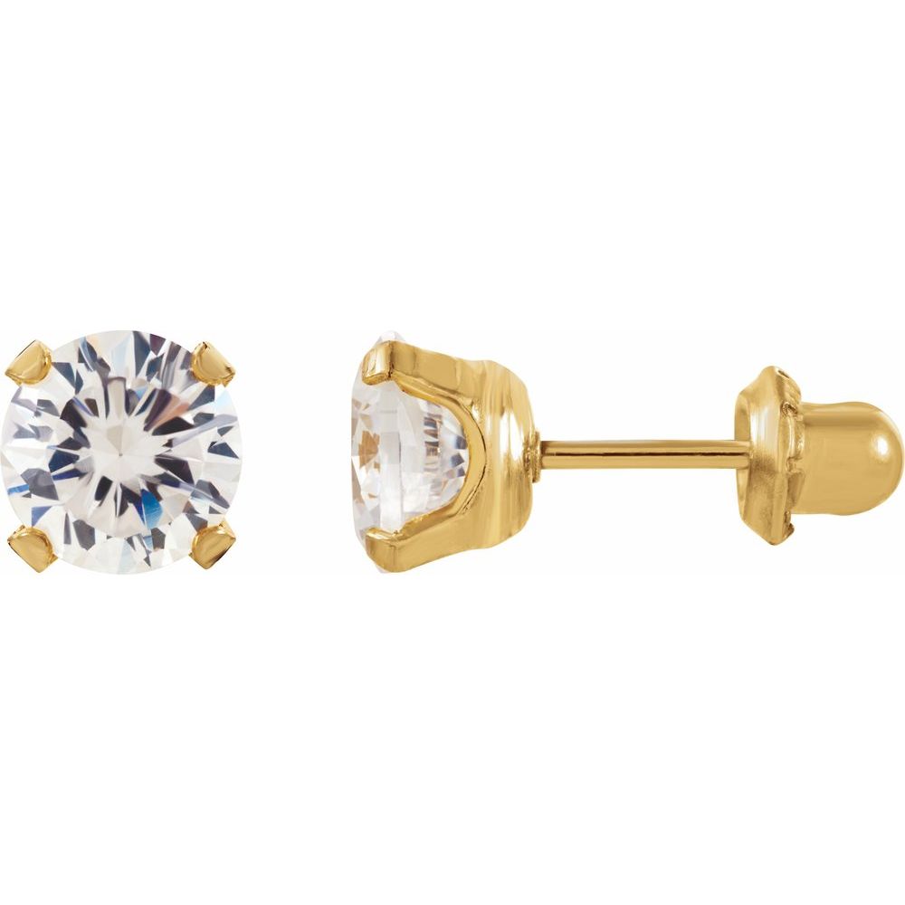 14k Yellow Gold 5mm Round Shape Cubic Zirconia Piercing Stud Earrings