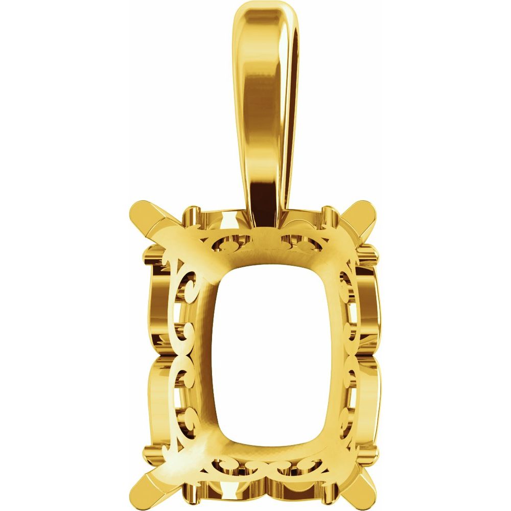 Description: 18k Yellow Gold 10x8mm Cushion 4-Prong Vintage-Inspired Scroll Pendant Mounting