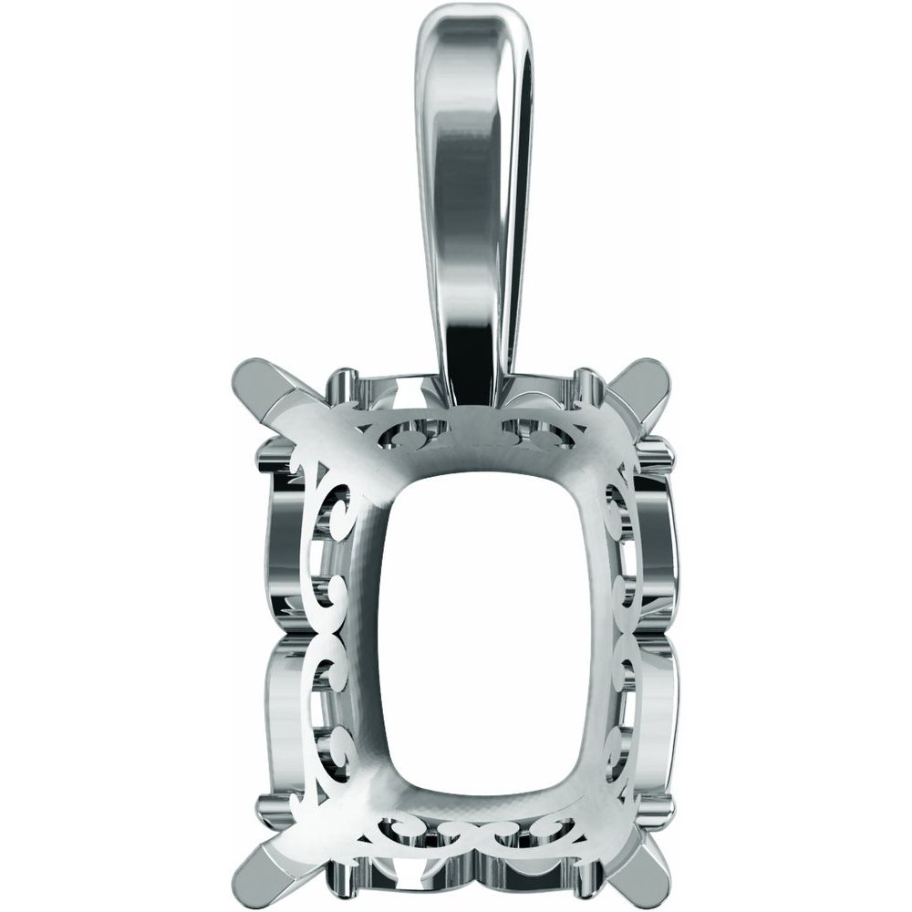 Description: Sterling Silver 10x8mm Cushion 4-Prong Vintage-Inspired Scroll Pendant Mounting