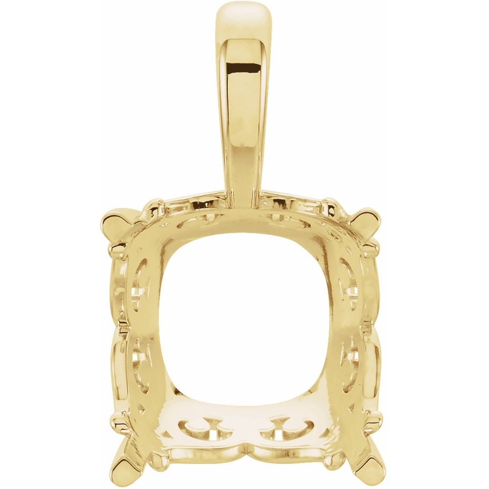 Description: 14k Yellow Gold 10mm Cushion 4-Prong Vintage-Inspired Scroll Pendant Mounting