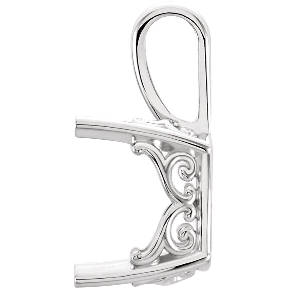 Description: Platinum 8mm Cushion 4-Prong Vintage-Inspired Scroll Pendant Mounting