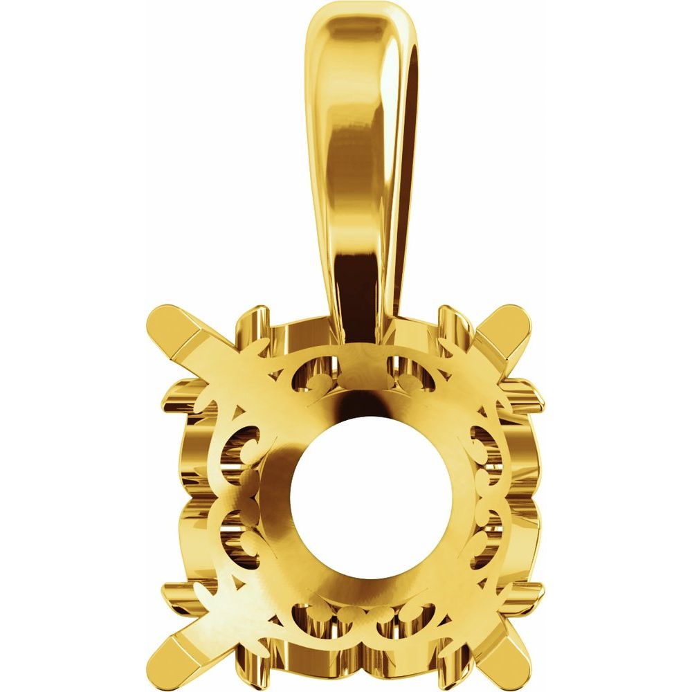 Description: 14k Yellow Gold 5.5mm Round 4-Prong Vintage-Inspired Scroll Pendant Mounting