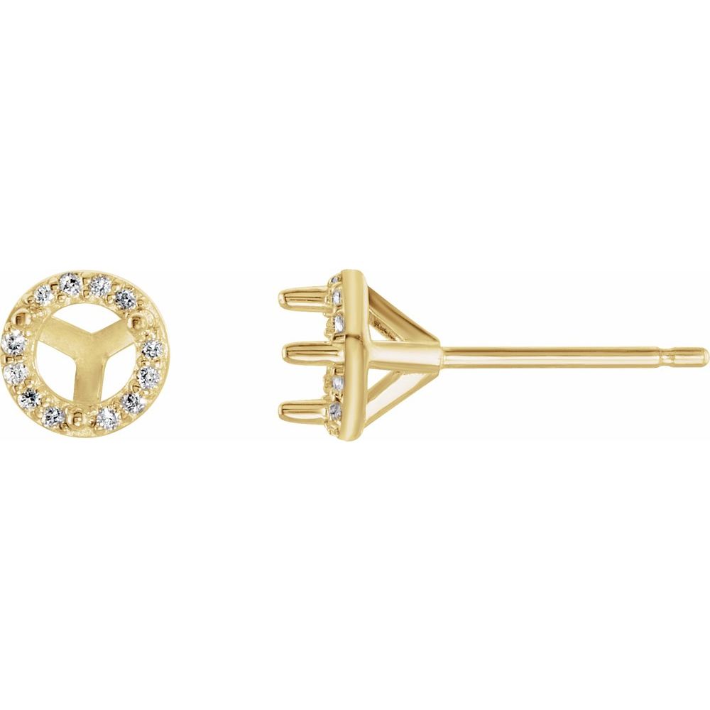 18k Yellow Gold 5mm Round Shape Diamond Semi-Set Halo-Style Earrings Mounting (Mounting Only, Not All Stones Included, 0.08 cttw, G-H, I1)
