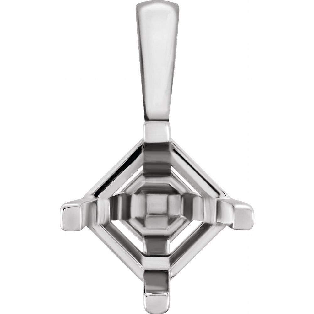 Description: Platinum 5.5mm Asscher 4-Prong Pendant Mounting