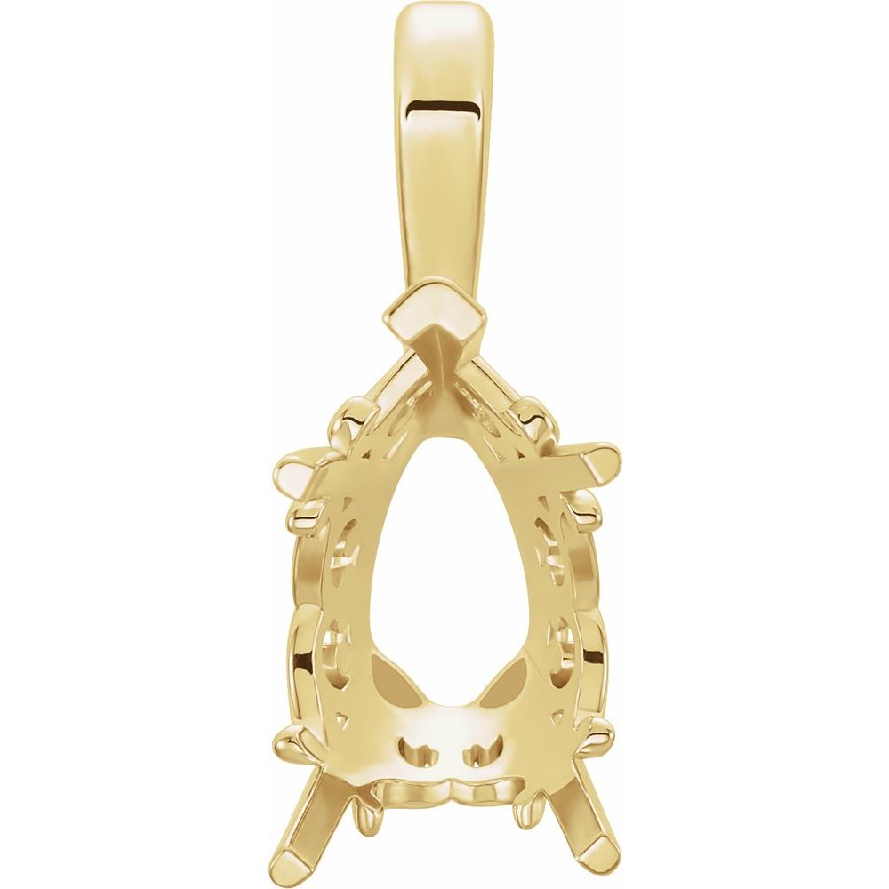 Description: 14k Yellow Gold 15x10mm Pear 5-Prong Vintage-Inspired Scroll Pendant Mounting