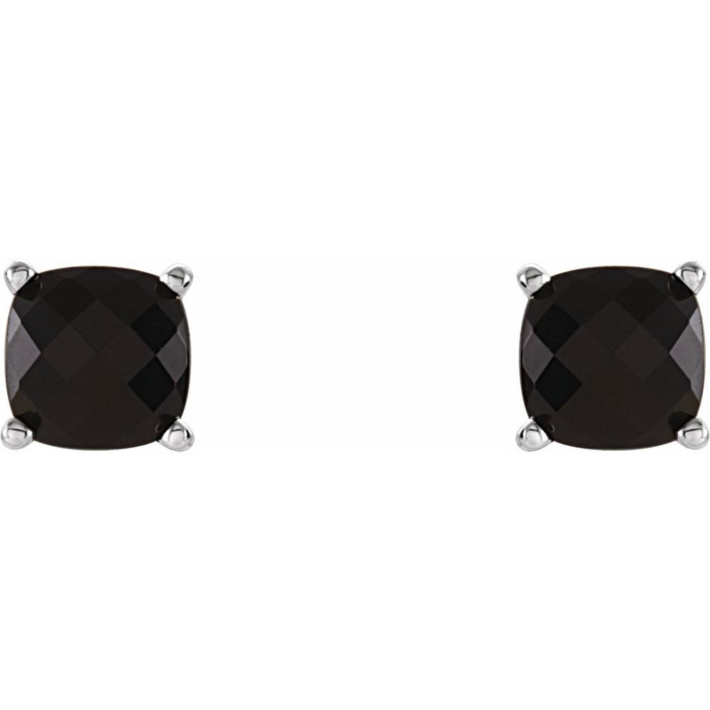 Sterling Silver 8x8mm Cushion Cut Black Onyx Stud Earrings