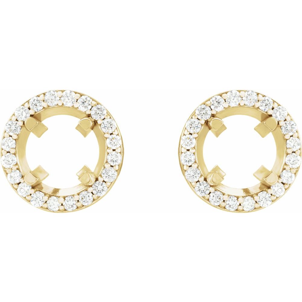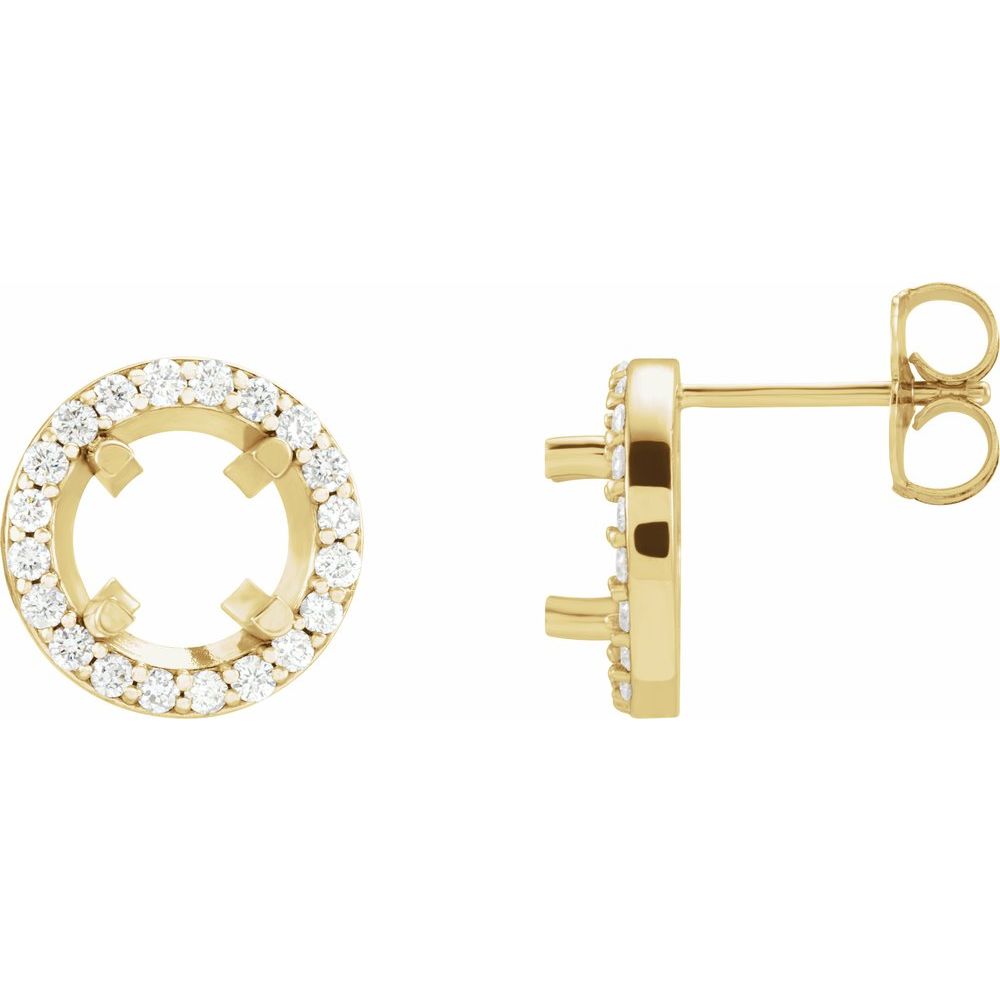 18k Yellow Gold 5.5mm Round Shape Diamond Semi-Set Halo-Style Stud Earrings Mounting (Mounting Only, Not All Stones Included, 1/3 cttw, G-H, I1)