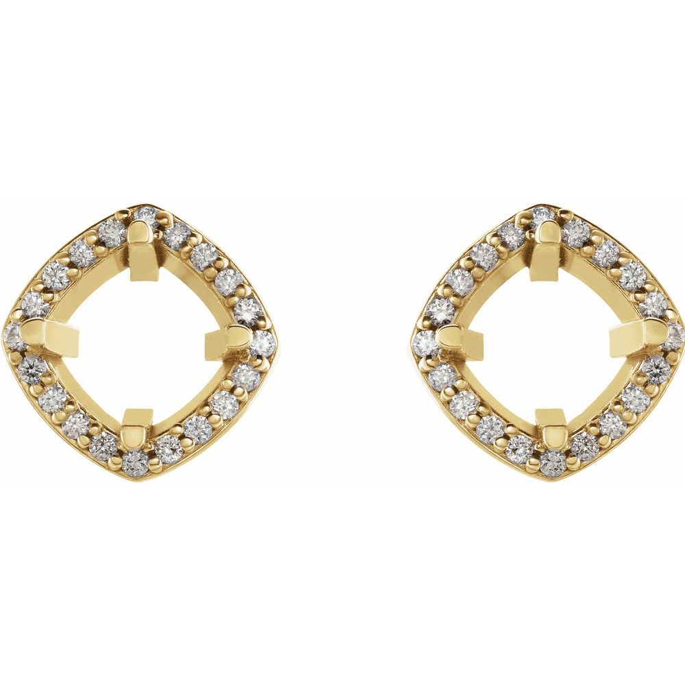 18k Yellow Gold 7.4mm Round Shape Diamond Semi-Set Halo-Style Stud Earrings Mounting (Mounting Only, Not All Stones Included, 1/4 cttw, G-H, I1)