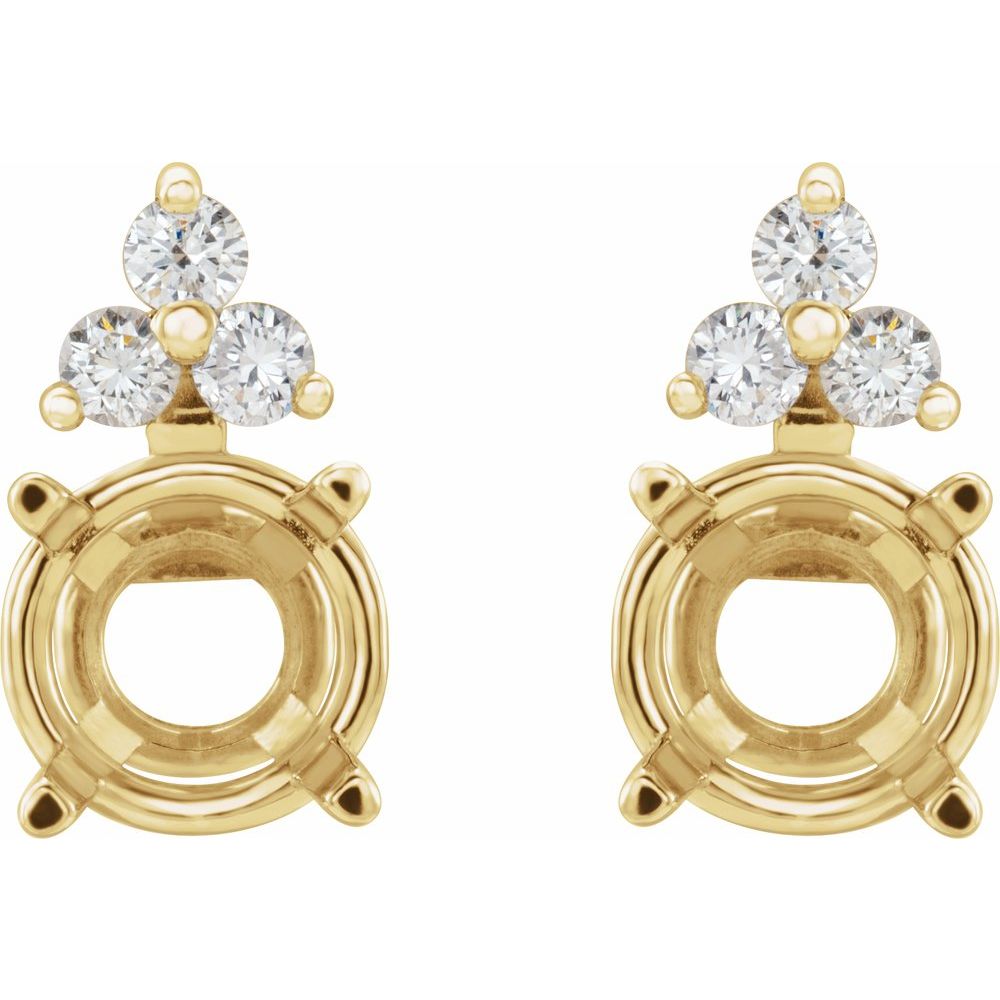14k Yellow Gold 6mm Round Shape Diamond Semi-Set 4-Prong Stud Earrings Mounting (Mounting Only, Not All Stones Included, 1/5 cttw, G-H, I1)