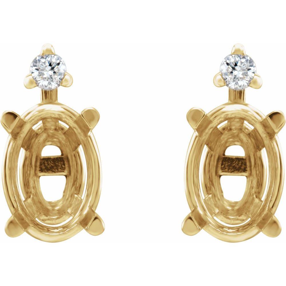 14k Yellow Gold 6x4mm Oval Shape Diamond Semi-Set Wire Basket Stud Earrings Mounting (Mounting Only, Not All Stones Included, 0.05 cttw, G-H, I1)