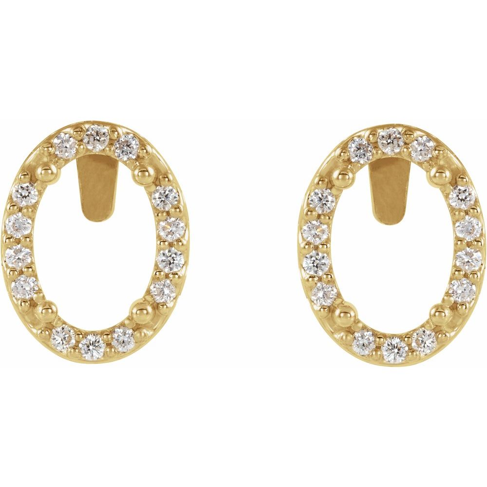 18k Yellow Gold 5x3mm Oval Shape Diamond Halo-Style Semi-Set Earrings Mounting with Pierced Gallery (Mounting Only, Not All Stones Included, 0.05 cttw, G-H, I1)