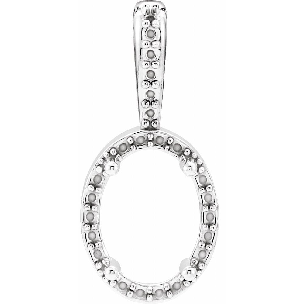 Semi-Polished 14k White Gold 7x5mm Oval Shape 4-Prong Halo-Style Pendant for Approximately 3/4 cttw (Mounting Only, Not All Stones Included, 15x6.7mm)